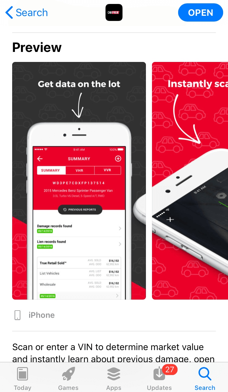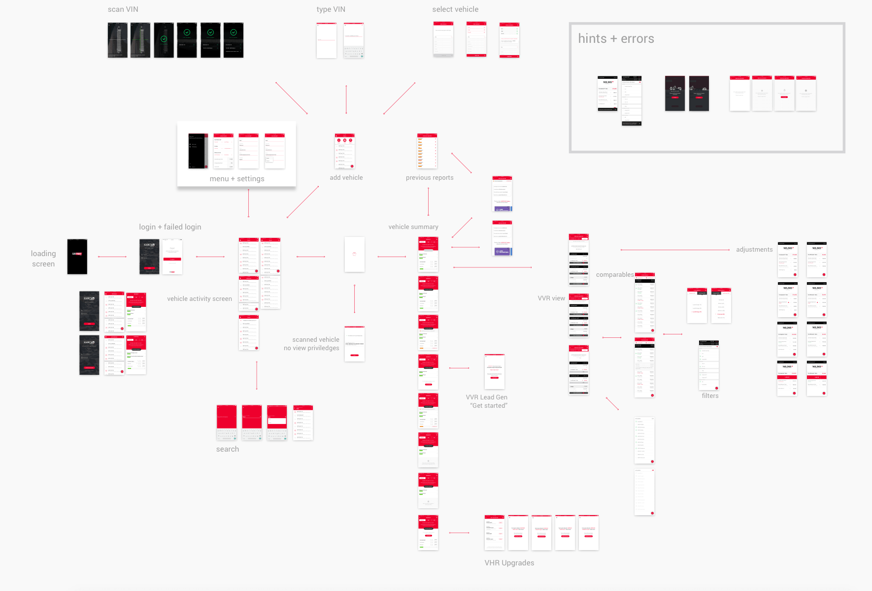 visit live site →This app was used exclusively by car dealers who would quickly access their cars histories. I was in charge of designing the layout as well as the user experience for the app. The app was designed to be easy to use and push the user towards their main tasks which was scanning a vehicle’s VIN, and viewing that vehicle’s records whether it was a history report, a valuation report or a lien report.