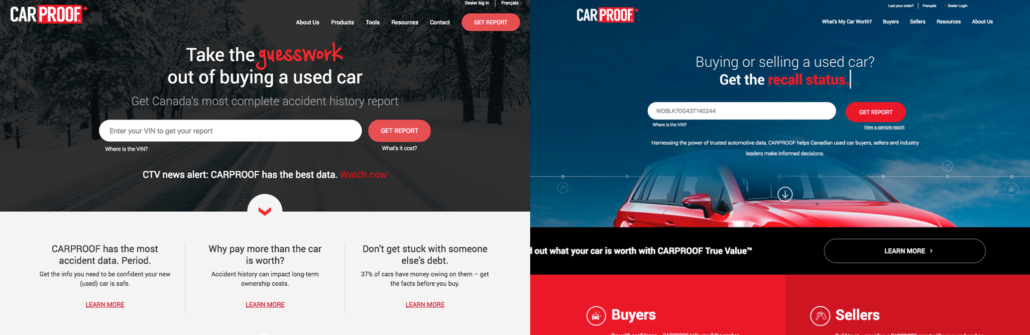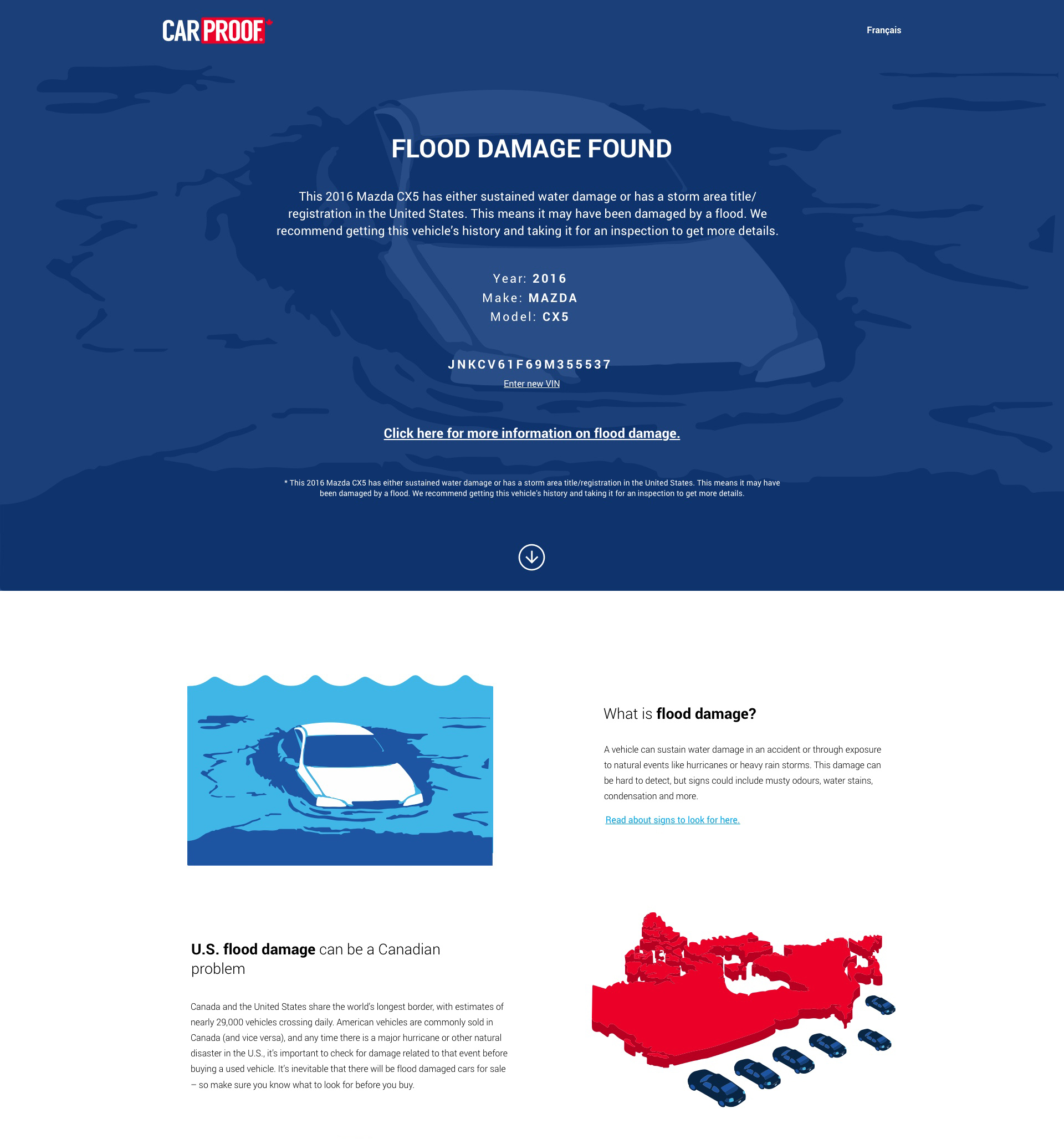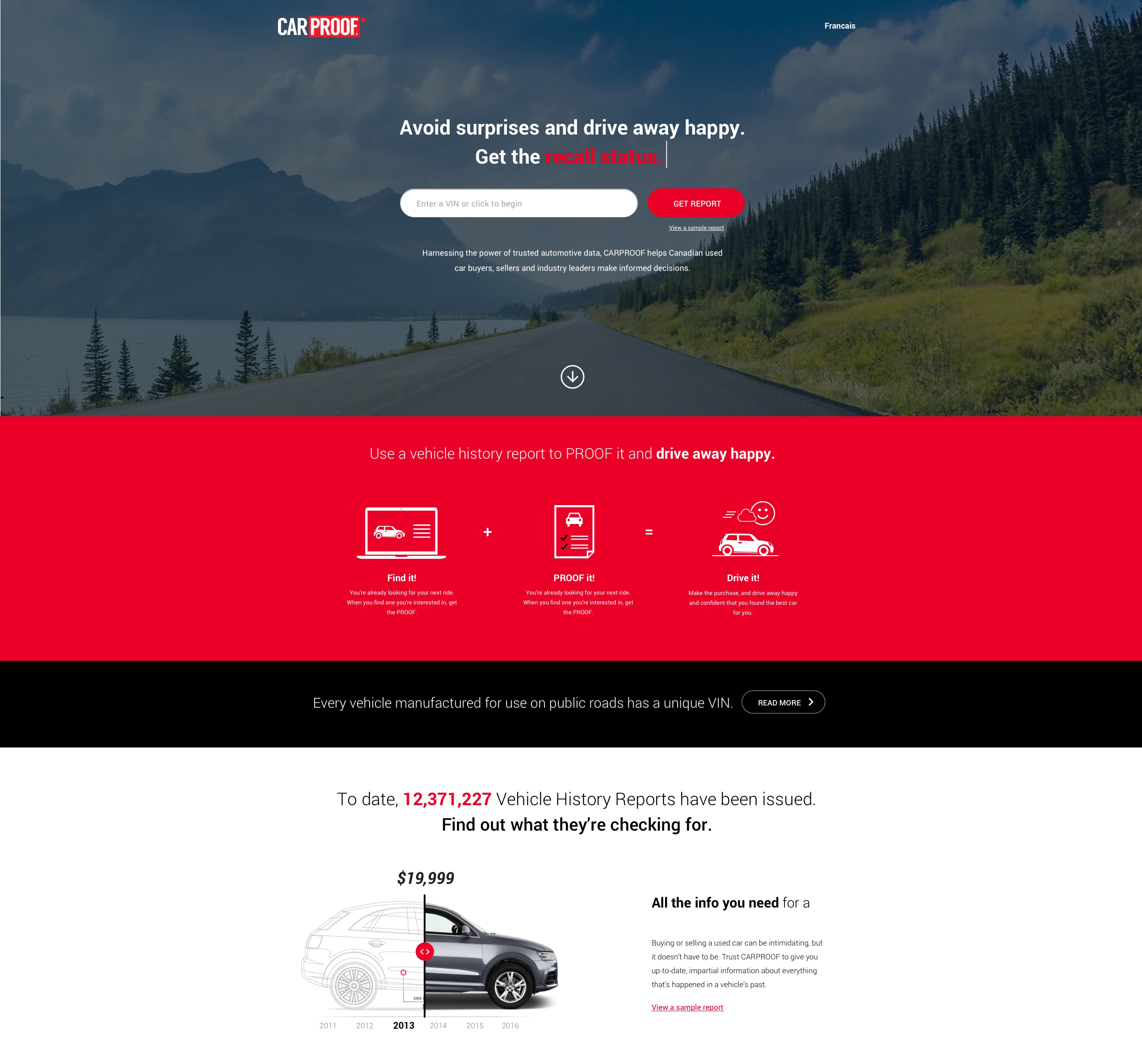 Carproof (now CARFAX Canada) is a automotive data company, specializing in showcasing consumers and dealers a car’s accident and damage history. The Vehicle History Report (VHR) is the core part of the business where a vehicle’s history like accidents, service data, recall information, and others are showcased. I worked at Carproof as a Multimedia Designer, during my time there I helped to design products that were used exclusively by car dealerships. This included the official **Carproof Mobile App** for dealers. On the consumer side I helped create the user experience for a consumer buying a Carproof Report as well as the **recall information tool**, the **flood damage detecto**r, and the **VIN Decoder.**