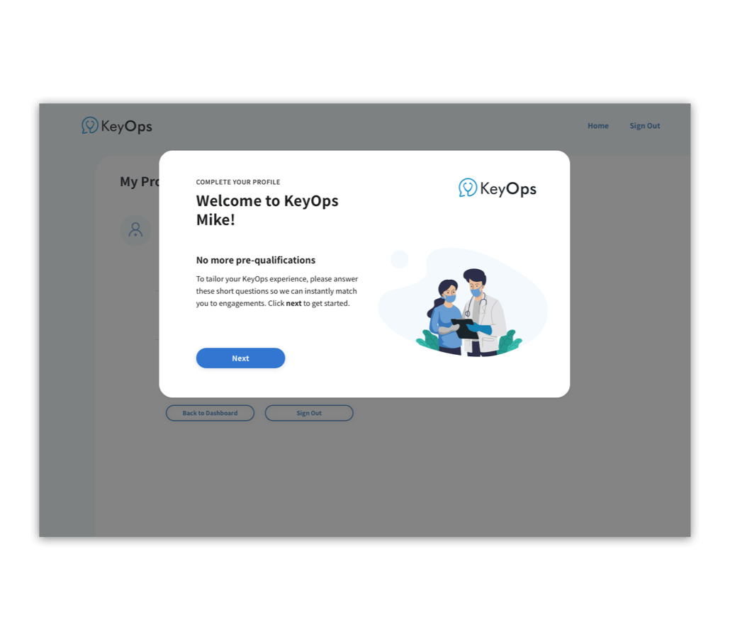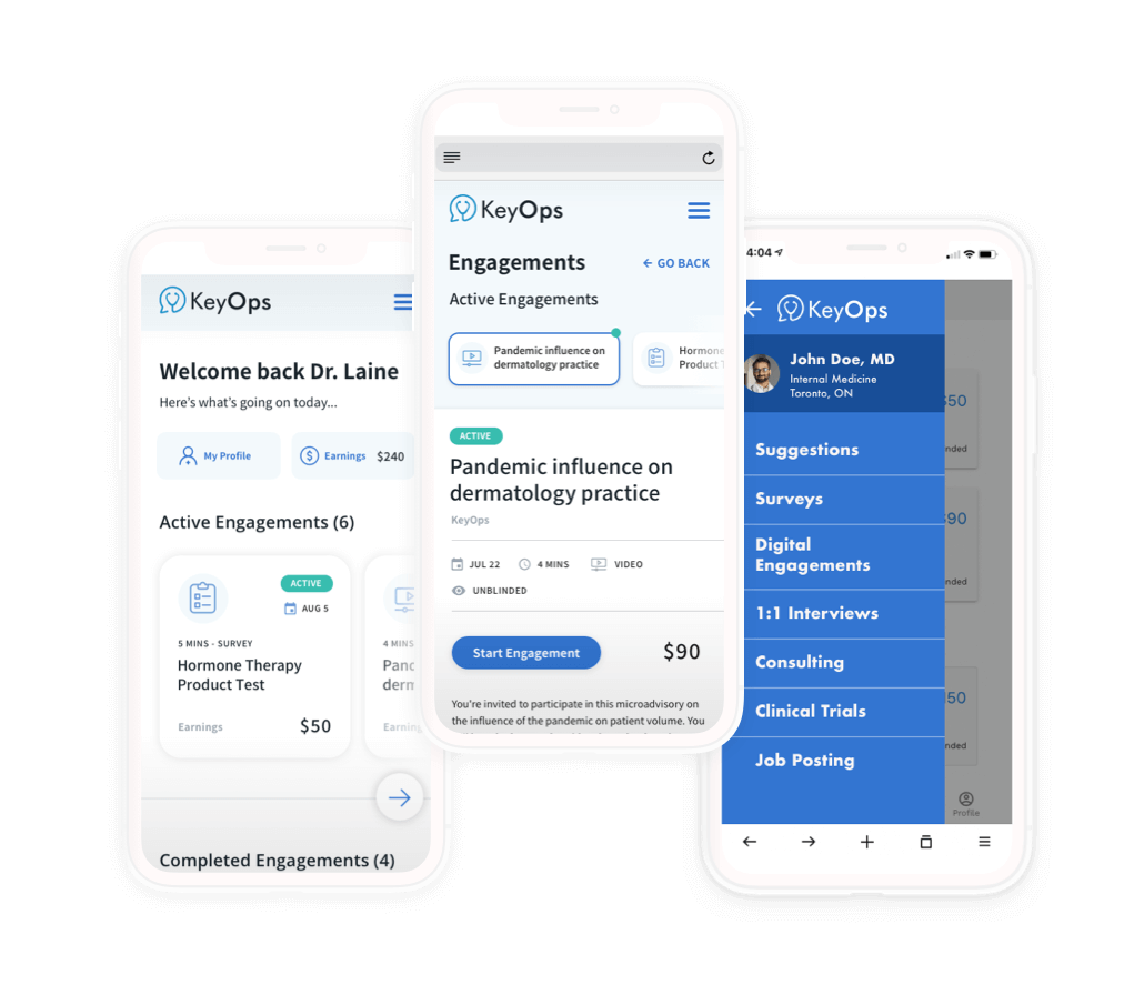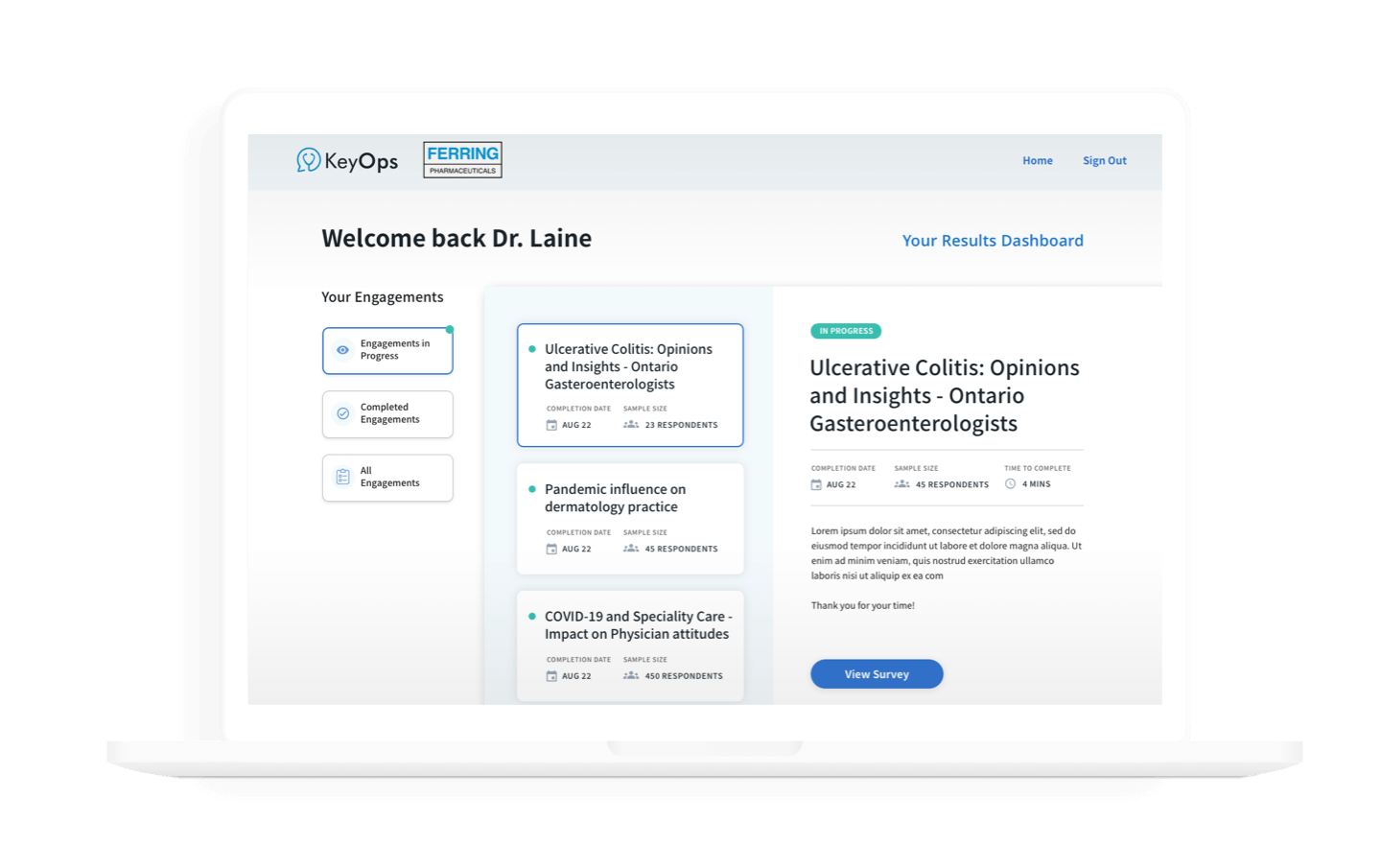 KeyOps is a digital-first approach to pharmaceutical market research that removes the friction in healthcare professionals (HCPs) relationships and unlocks the immediate exchange of insights from a trusted healthcare expert network. Keyops main feature is for HCPs to have better ways to complete surveys, get data, and interact with life science companies. Having created their marketing website I also created the designs and the user experience for their HCP Dashboard.