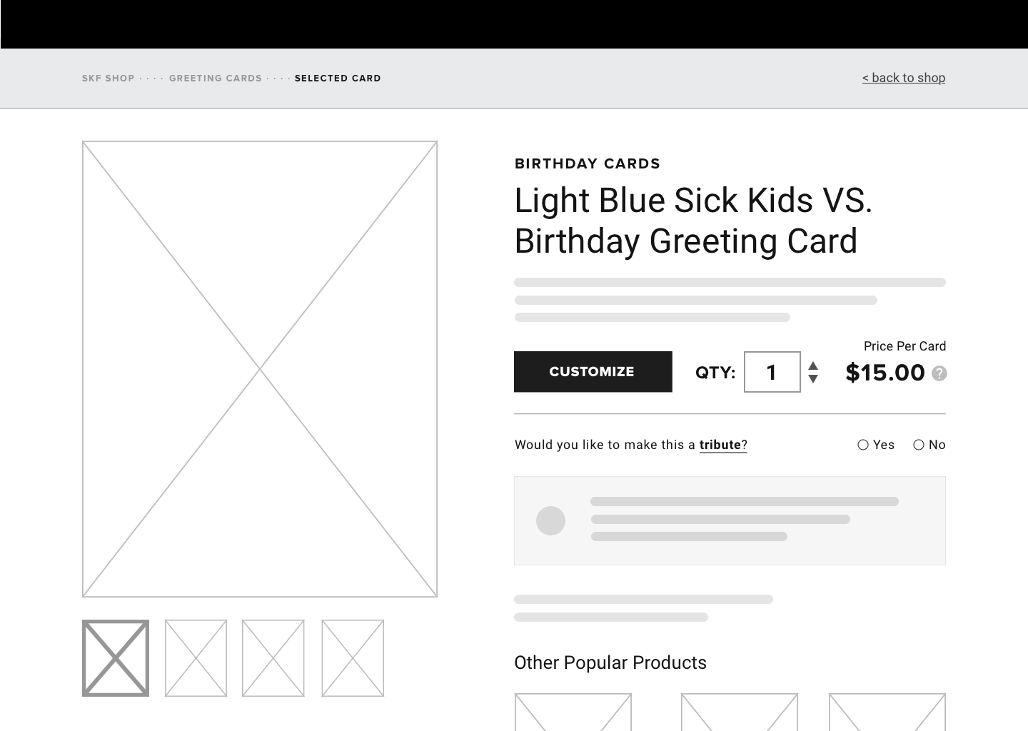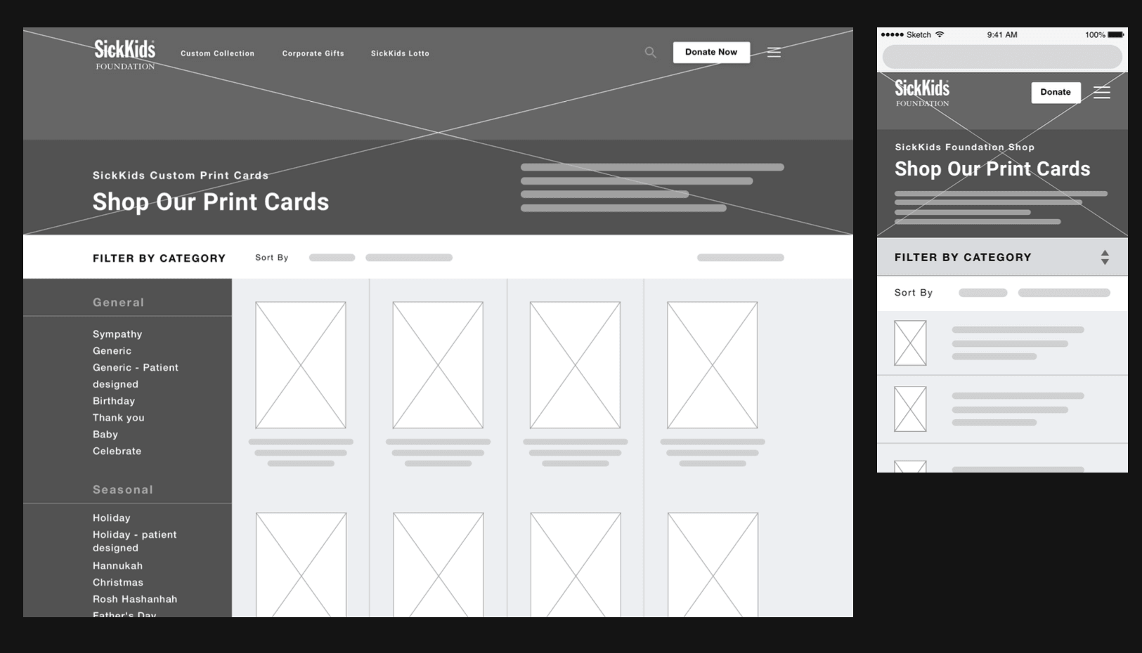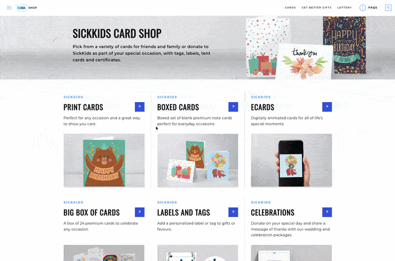 SickKids Foundation is one of the oldest health care charities in the country, who’s mission is to inspire communities to invest in health and scientific advances to improve the lives of children and their families in Canada and around the world. While working as the Design Lead at Blackcreek, a small digital agency in Toronto, I worked with SickKids Foundation to deliver and successfully launch a new eCommerce website. The site delivered a better donor experience, automated manual fulfillment processes, and contributed to their ongoing efforts to raise money for a brand-new hospital.